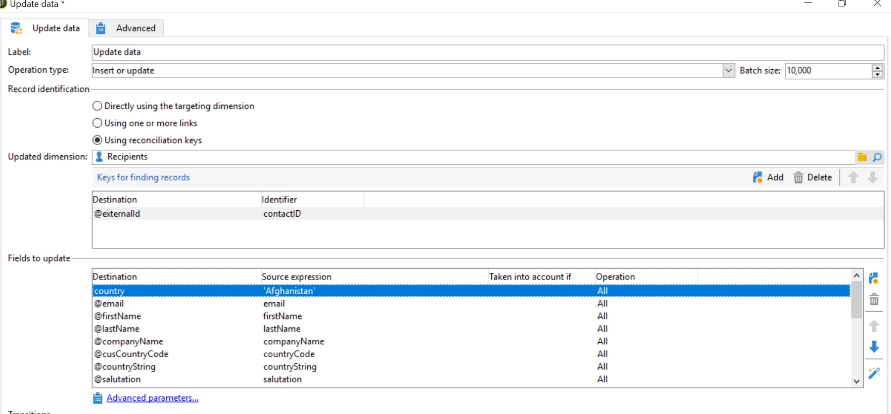 We have a situation where we need to update the country for a recipient dynamically in the workflow through the update data activity,