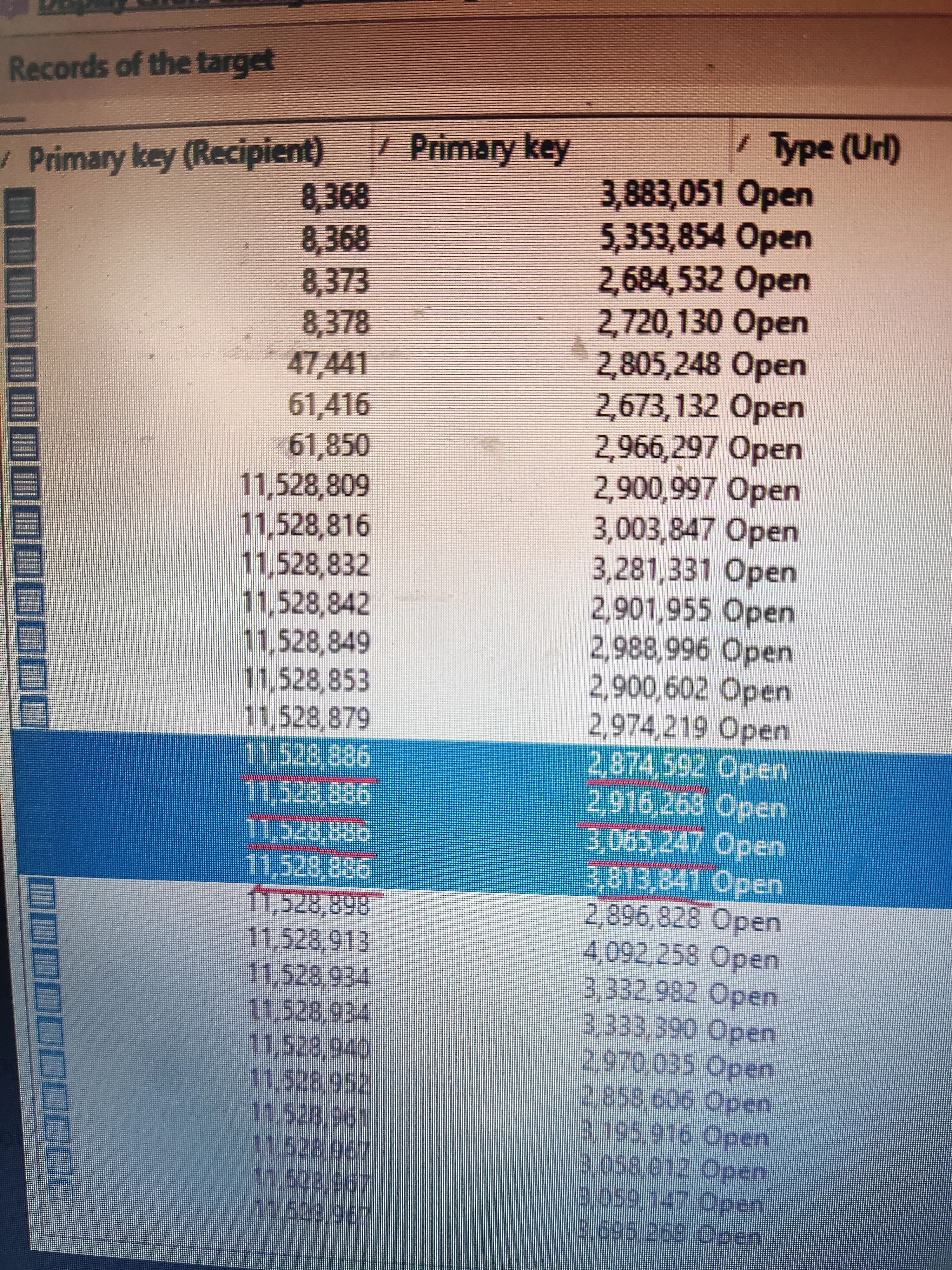 2. However, while analyzing the reports for a specific delivery, I noticed that a single recipient opened the email multiple times. For each of these opens, a unique tracking primary key seems to be generated for the same delivery. This behavior suggests a 1-many relationship between the recipient and tracking logs.