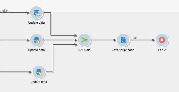 Repeat the same in all other ETL workflows, by connecting all update data activity with AND join and with JS to trigger next Workflow.
