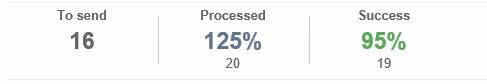 The emails to send is 16, but processed number is 20 and succes is 19, which is completely wrong, after getting inside the delivery log i notice that the number of processed should be 16 and succes should be 15 :