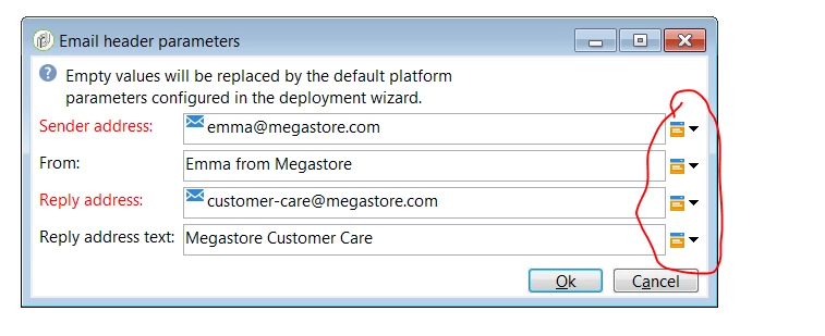 delivery.mailParameters.senderEmail ="newemail@example.com";