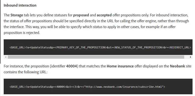 As per the adobe documentation, below is the URL that offer engine generates and updates the proposition status.