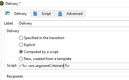 I need to used multiple delivery templates in Single delivery through script based on certain segmented criteria and intializing that segment criteria in JS Activity just before the delivery but when I tried to use that through script just for one delivery template then It moved the delivery template to finished state but I need to use same delivery template multiple times and need to maintain Delivery transaction details for every delivery.