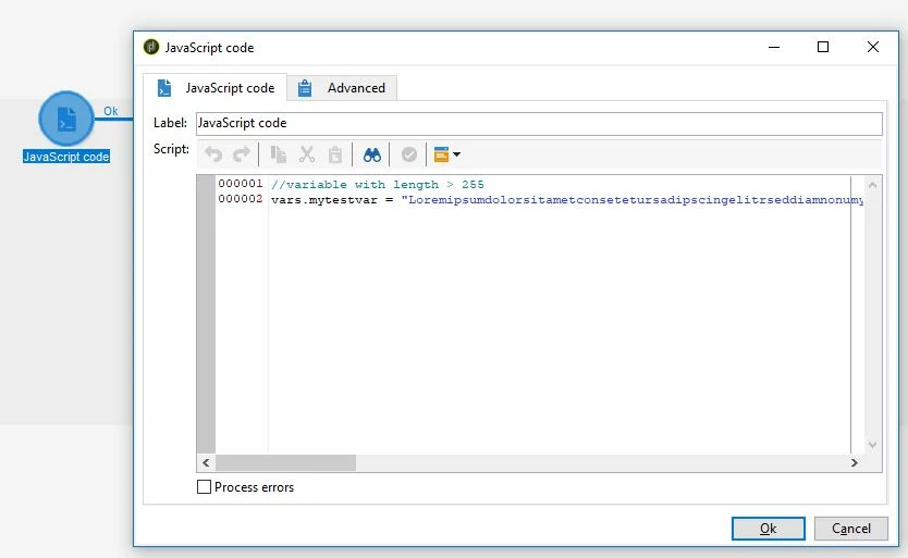 The goal is to use the variable (targetData.cmpdeliveries) in a delivery (continuous delivery activity in the same workflow). It works if the variable has less than 255 characters. Any solution for string >255 characters?