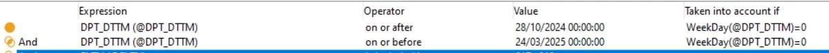 This delivery is only relevant to flights departing on Mondays within the given date range.