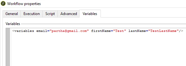Variables Section in Workflow Properties