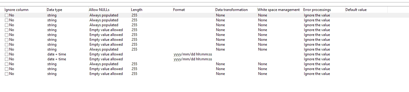 So out of 12 records, 11 records has proper format for all column, and one row alone has incorrect formal.