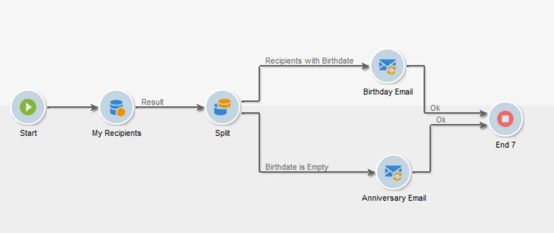 Workflow logic for customers in Recipient table with Birthday date VS blank Birthday date and a different email to be sent.