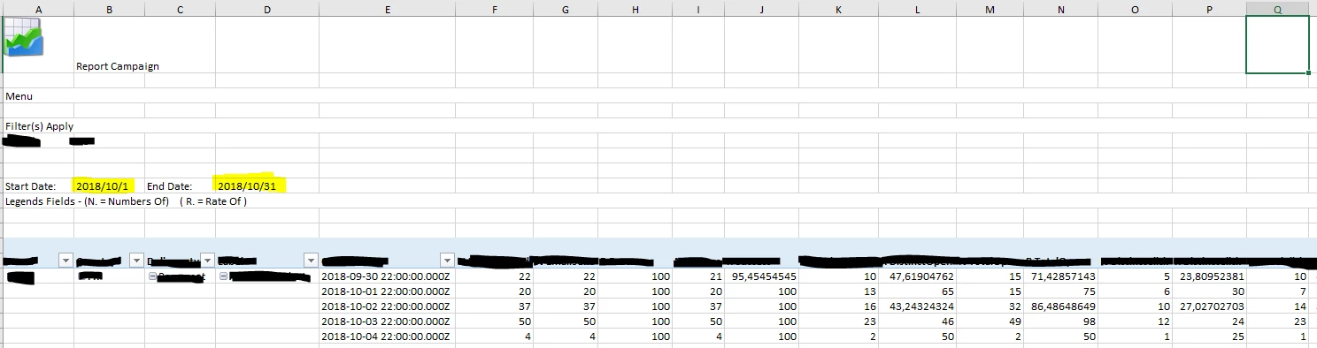 After the export to Excel workbook i start noticing that the datas are wrong, more specifically the dates. the example here is that i wanted take datas from the first of october to the 31, in the reports page of adobe campaign it shows me the field with the date 01/10/2018, after exporting it and opening the excel file, ive the same field with the same datas in it but the date 30/09/2018, i dont know why but all the fields have one day less than the original datas.