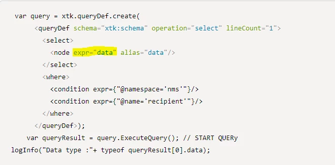 logInfo("Data type :"+ typeof queryResult[0].data);
