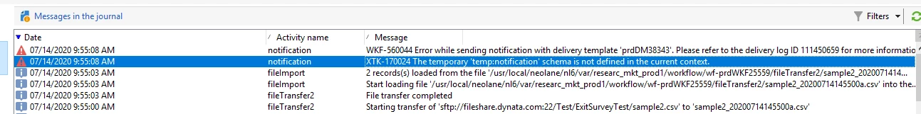 XTK-170024 The temporary 'temp:notification2' schema is not defined in the current context