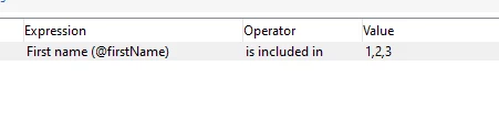 Zero results on using 'is included in' with dynamic parameters such as $(instance/vars/@myVariable)