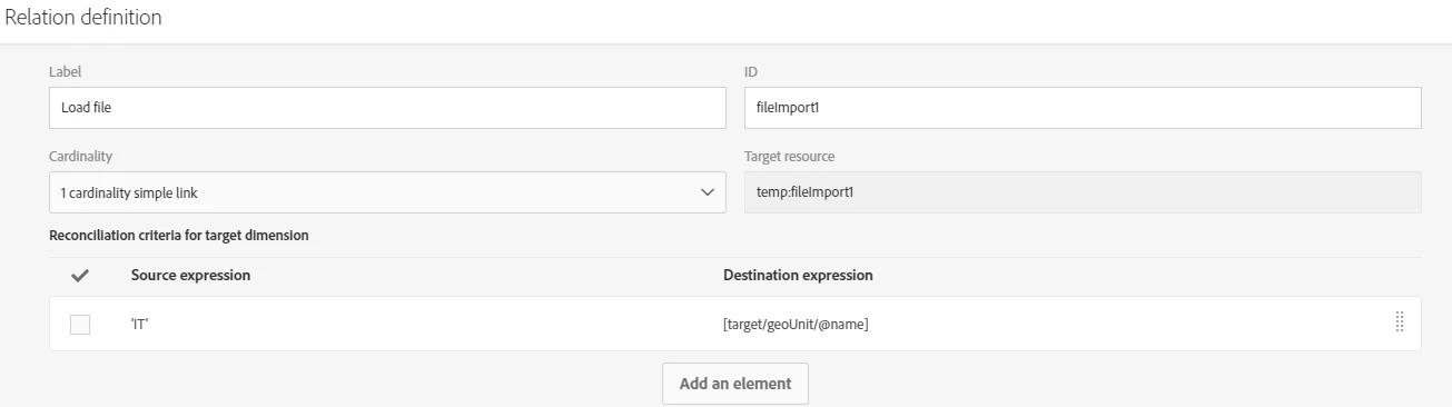 2. If you want to specify a 'hardcoded' value, i.e. not coming from your file, you can still do it with an enrichment activity where you'd specify the relation and the value to update like that (I used a query in my example because I did not have a file available but that would be the same with a load file activity):