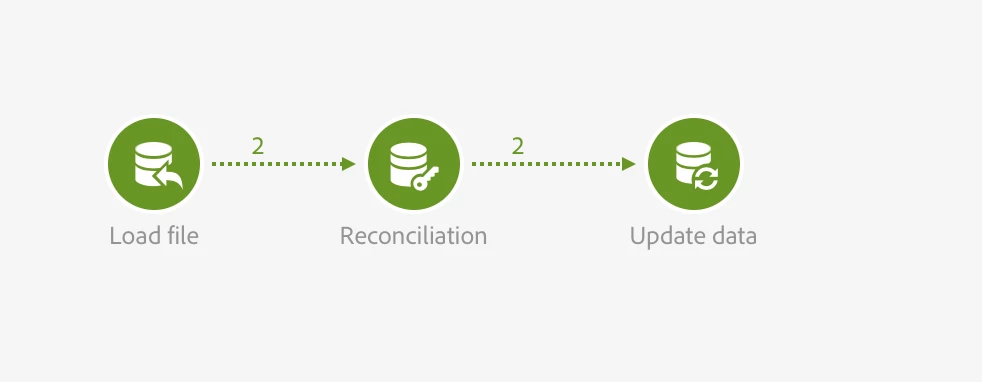 In the "Identification" tab, I select "Using reconciliation criteria" and keep Profiles as dimension to update. As a reconciliation key, I use the email column of my file and the email field of my database. You may use another key to match your requirements (if you use a specific field or combinations of field to identify unique records).
