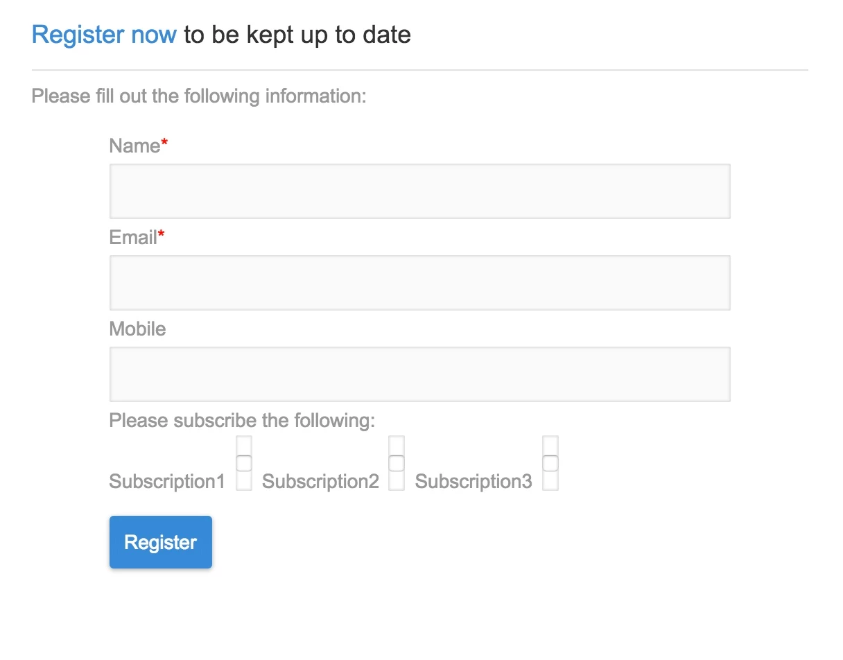 - User opens the subscription landing page which is having three subscription options and fills out with name, email, phone and selects subscription1, subscription2.