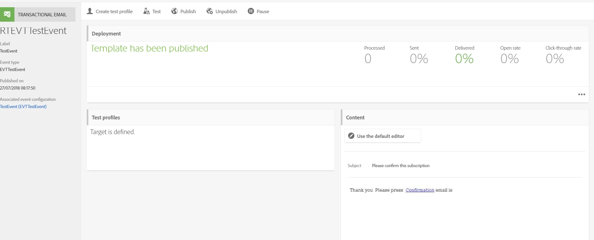 For our client I am trying to set up a simple profle transactional message when a customer subscribes to a NewsLetter service.