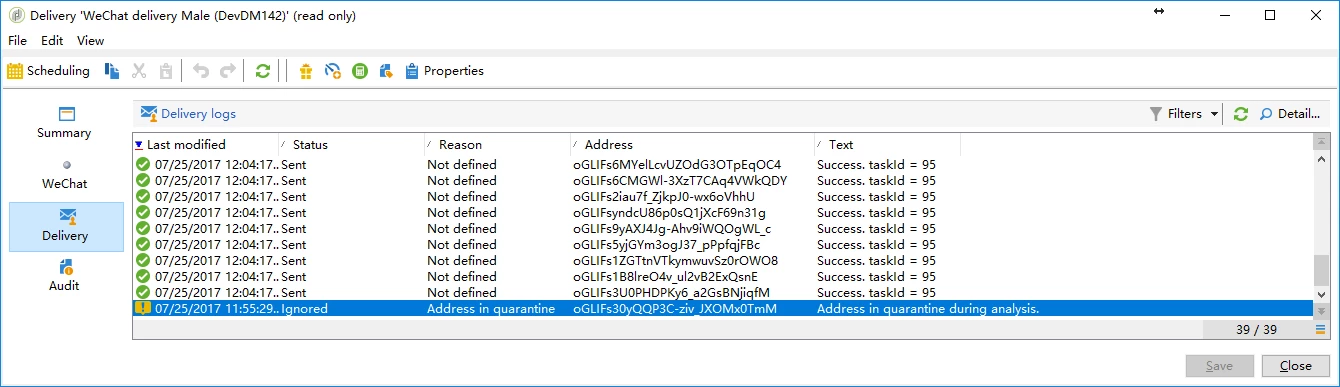 I create a test delivery and send message to some contact. But after sent, I found there was a address not deliveried.
