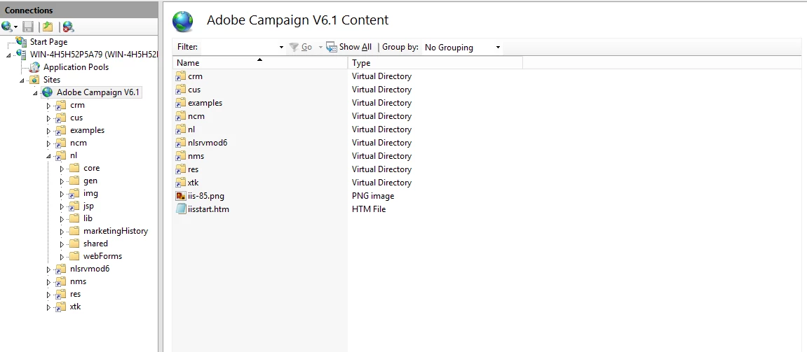 I have followed the instructions to configure IIS web server with Adobe Campaign V6.1