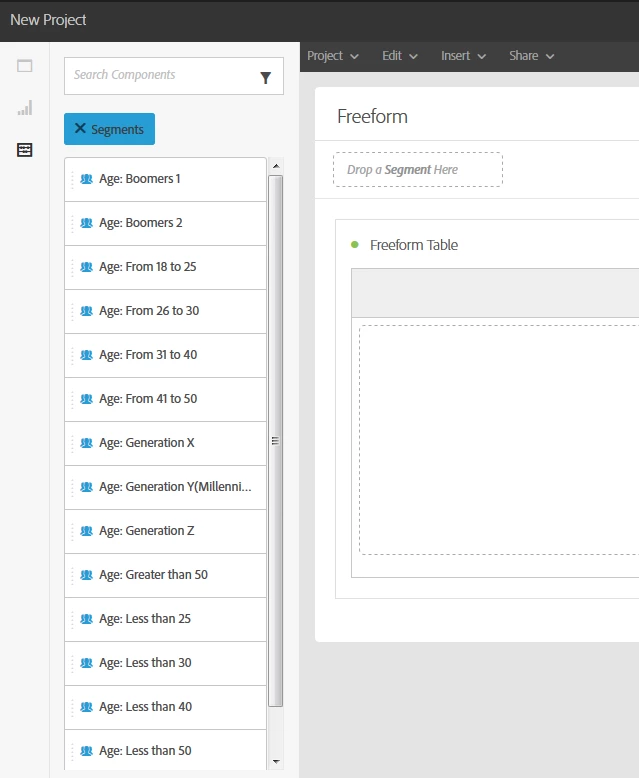 However, the only Segments available in Dynamic Reporting are by Age, and there is no way to create more Segments.