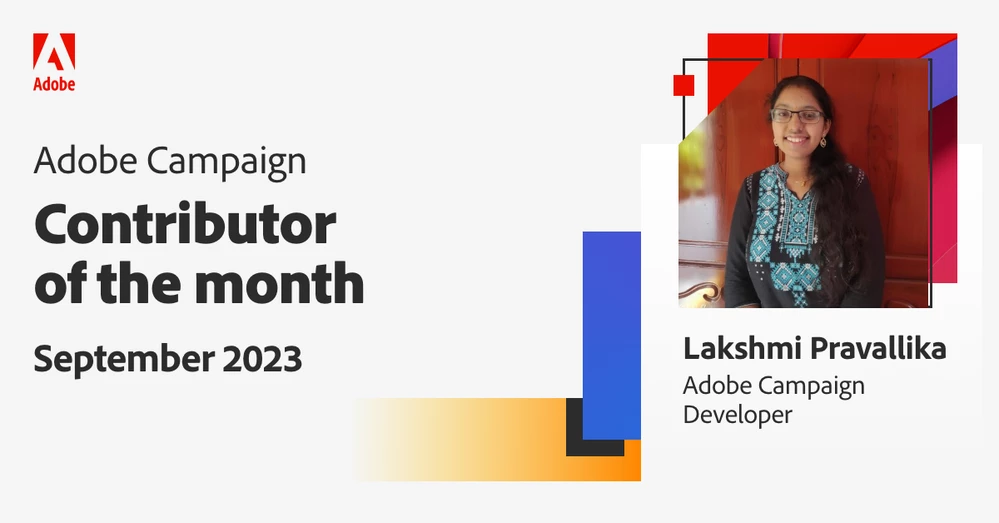 In our effort to reward the monthly top users with a gift card for their participation in the Adobe Campaign Community forums, we present to you the two top contributors in the Campaign Community for the month of September 2023 - @LakshmiPravallika and @AkshayAnand.