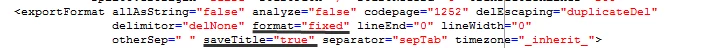 saveTitle according to documentation is the attribute that declares the column header, however the format attribute:"fixed" seems to override any such tampering.