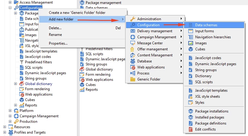 Have you tried recreating the folder by right clicking on Configuration and adding the Data schema folder?