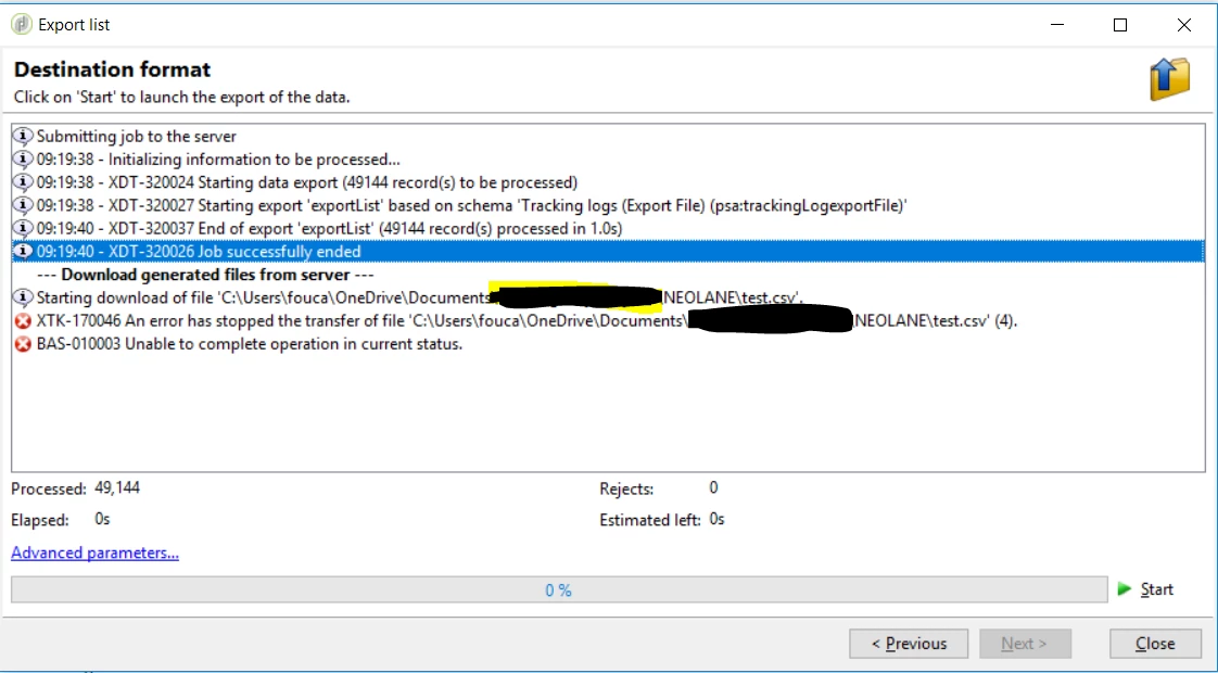 I don't know why, but I cannot dowload tracking results from adobe dashboard. It always start then stop the process with two errors.