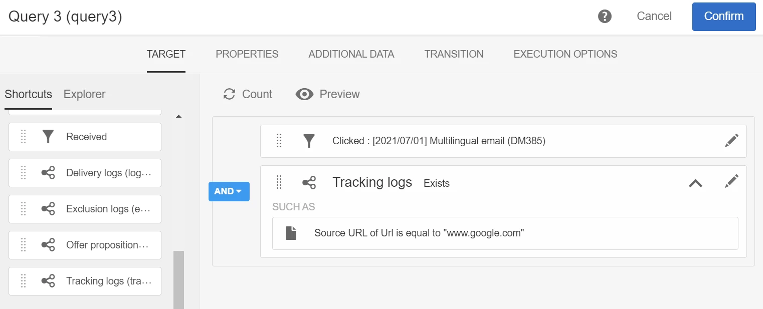 Creating a Audience who have clicked on specific link in a delivery
