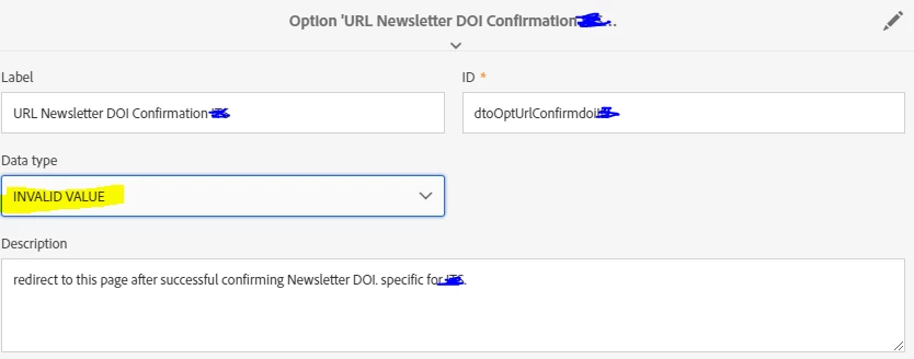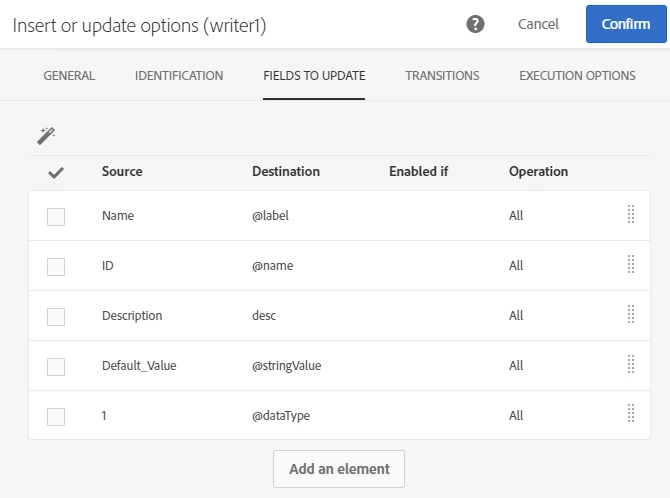 So mainly I have a list of ID, Label, Default value and Description. I read the list and push it to a Update data activity.