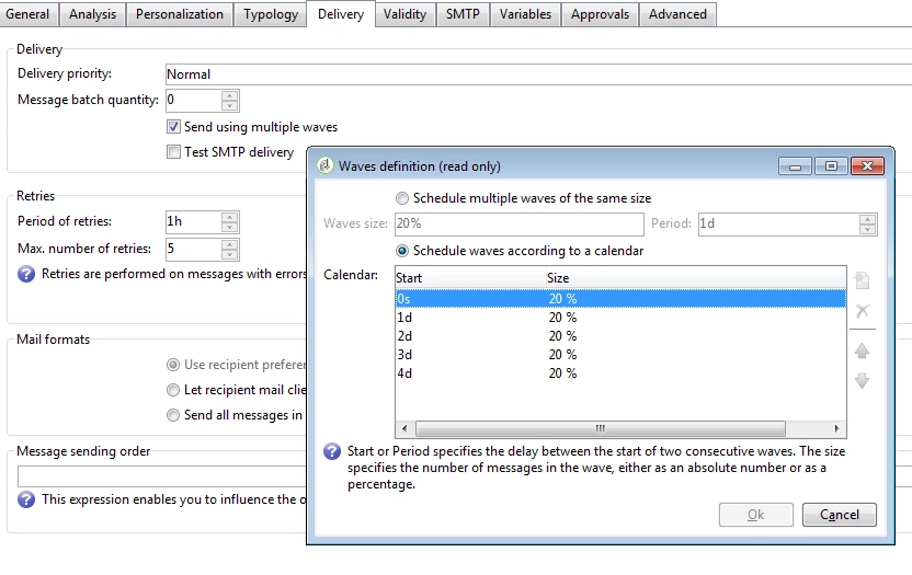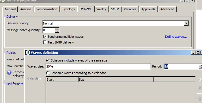 SO if I see your setting of your email delivery, the start column tells the gap between two waves