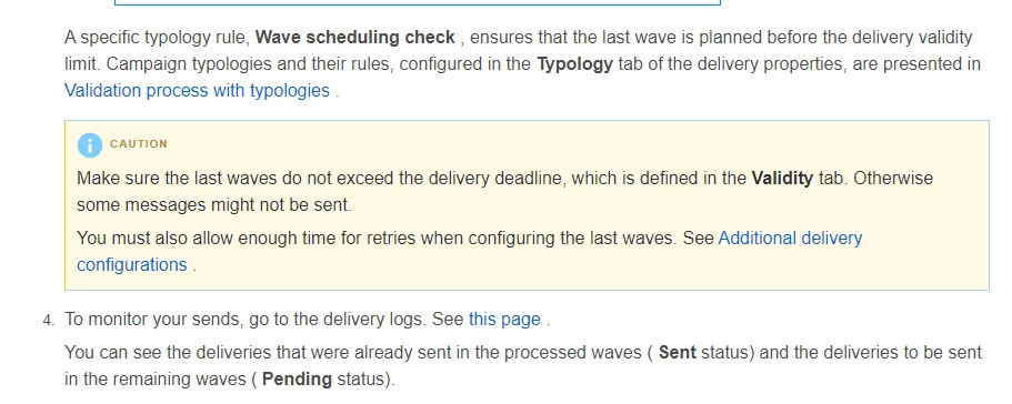 So we want to know why the delivery was not through on those two days (3rd and 5th day) of the delivery. Is there any way i can get the logs of the delivery sent through waves  because even in the audit tab of the delivery we only get the campaign launched and the first delivery sent.