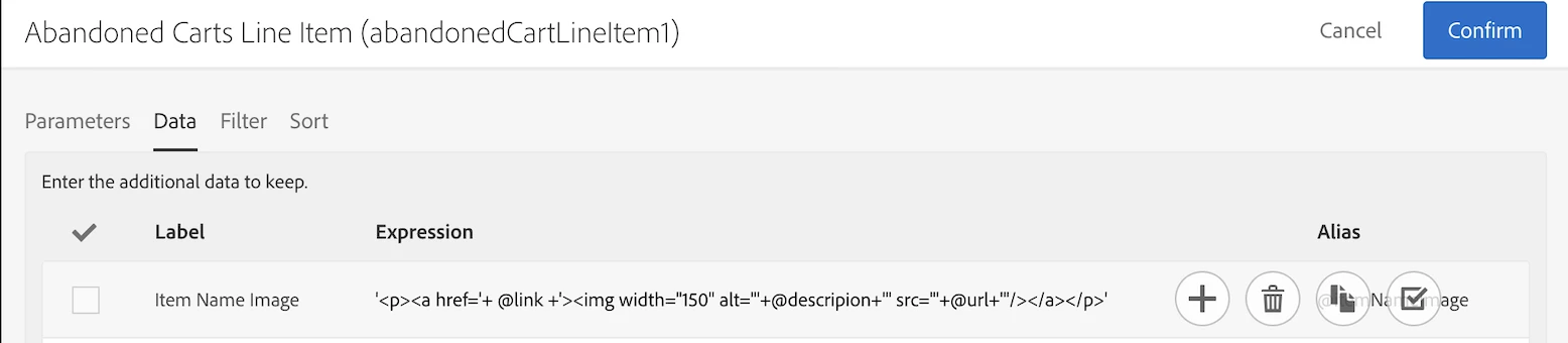 - Then I have used Enrichment activity to create collection(Size: 3) "itemNameImage" of Order line item and add it to temporary schema. The collection variable itemNameImage holds HTML content like <a href="@productLink"><img src="@productImage"/></a>