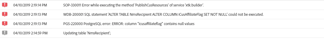 Error Message - ACS Publishing a Data Schema with Custom Resources