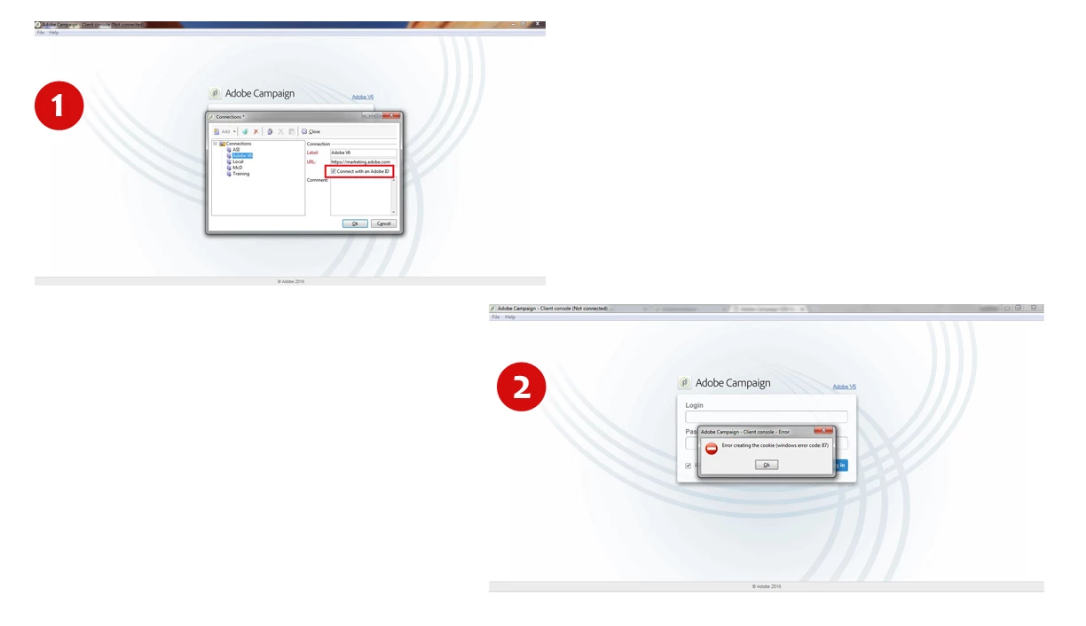When I am trying to connect through IMS, by checking the "Connect with an Adobe ID" in the console's connections window, its giving me the error as per the attached snapshot. How to resolve this. I am using "https://marketing.adobe.com" as URL.