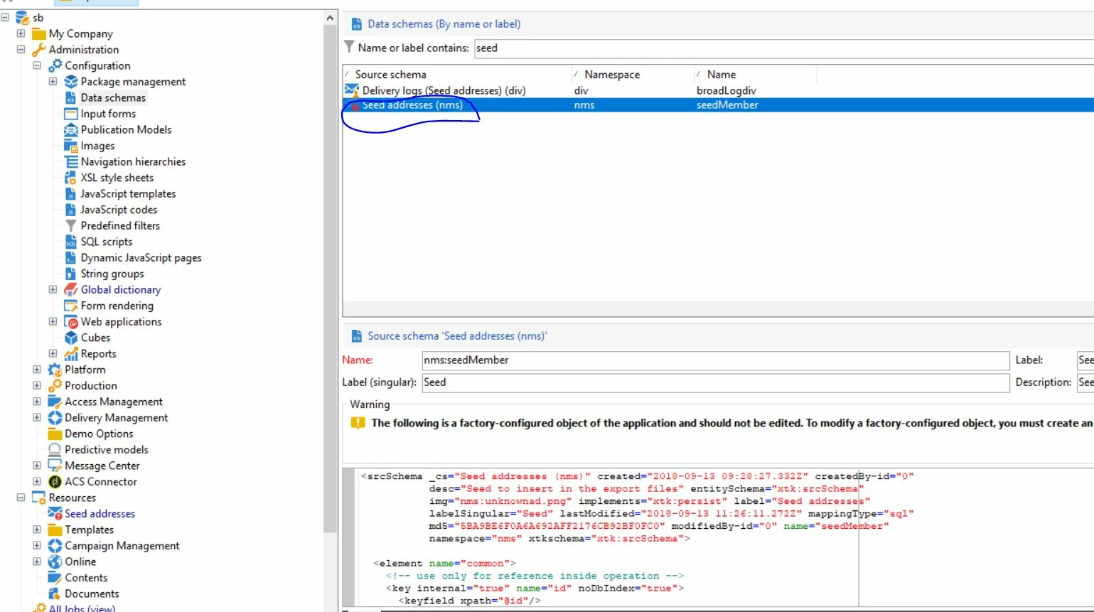 I am getting error while editing any schema or creating new schema in sandbox environment. I see one of our out of box schema(nms:seedMember) got corrupted and when I try to regenerate the same, getting xtk/170030 error so basically this error is not allowing me to do any modification in any of the schema. Kindly help me if you have encountered similar issue.