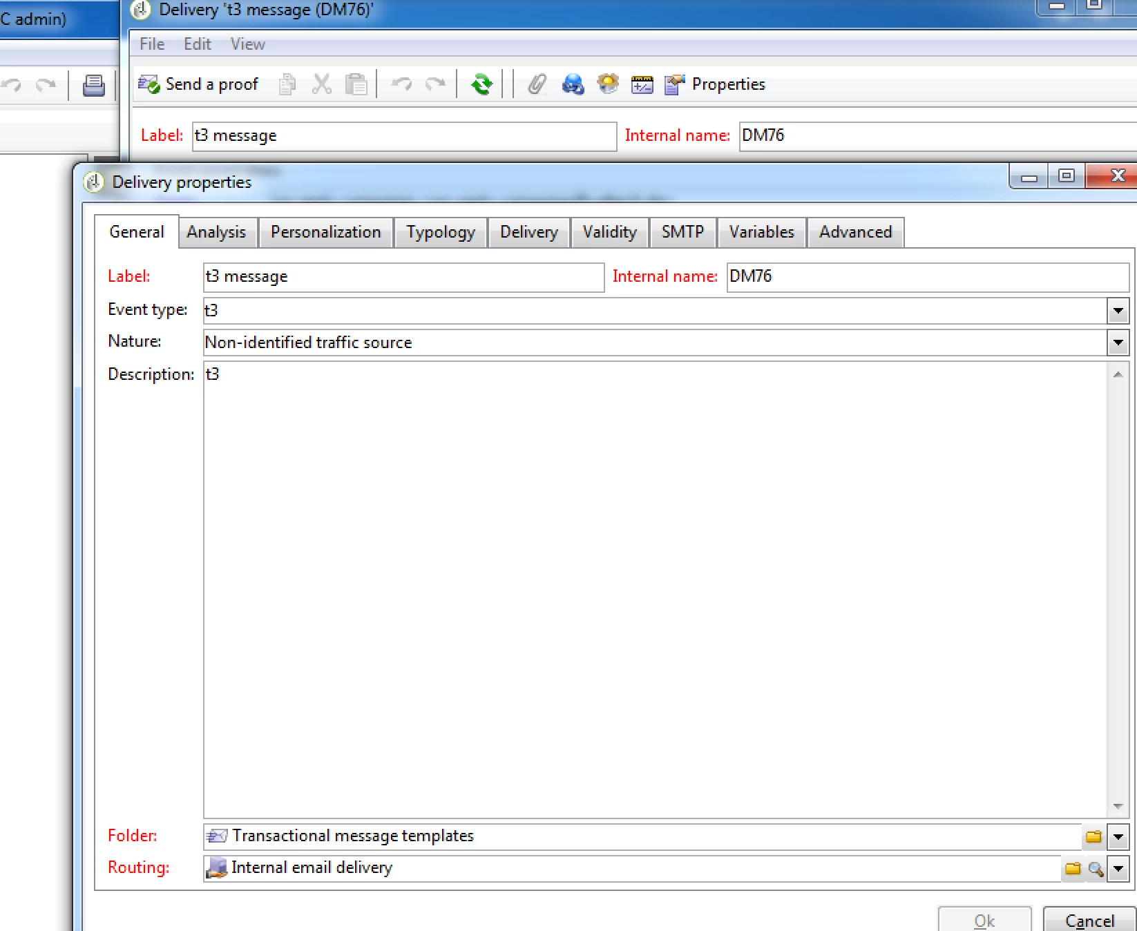 - created a template, type (called "t3") according to the steps in the documentation file "message-center-v6.1-en.pdf".
