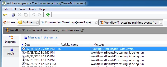 in the Audit log of the Workflow "Processing real time events" i see "[Routing] 1 message(s) with errors" (see screenshot).