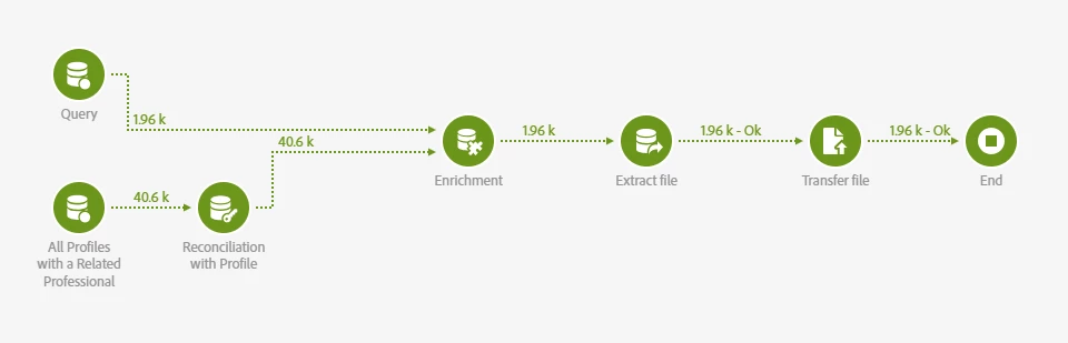 Goal: We want to be able to export a complete list of subscribers to a specific service, but along with profile data, we also want to be able to extract data from a separate data table (related professional).