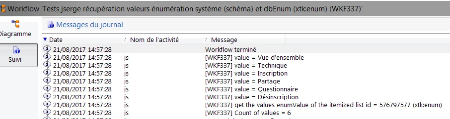 I wasn't able to find a standarf function in the JS API of campaign, so I fetch all the values using xtkQueryDef.