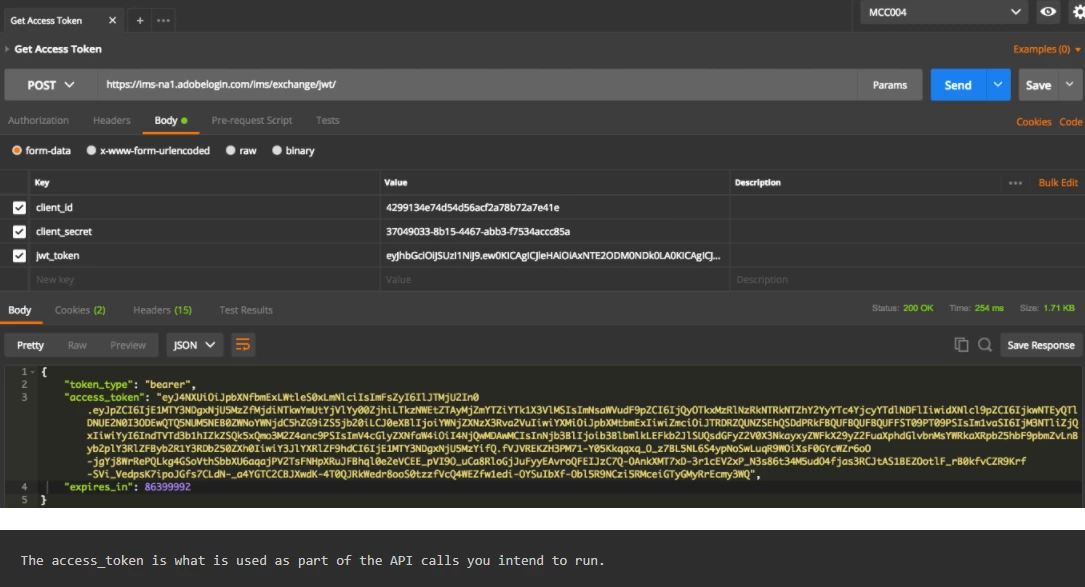 - Further with the JWT Token, we were able to generate the values Access Token, Token Type, and expires_in(Java).