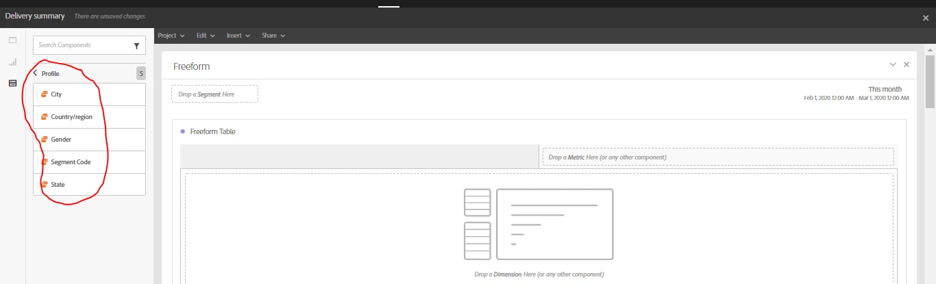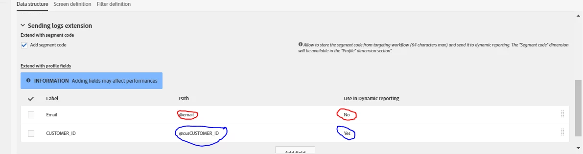 I am able to add only the custom fields from profile schema into the dynamic reports. And I am not able to add Out Of Box fields from profile schema into the reporting dimension section (in the highlighted section, i want to add email address field).
