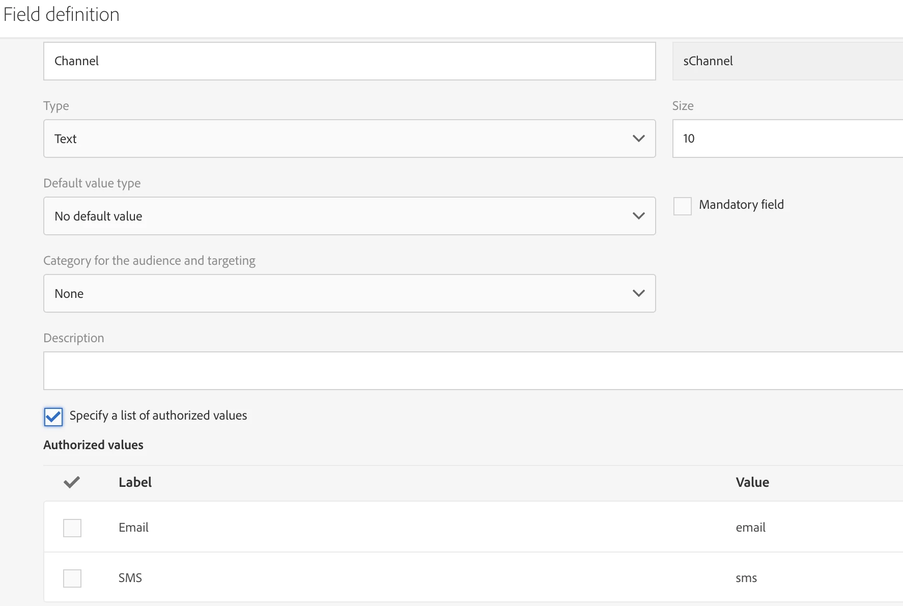 You can use list of authorized values while creating attribute and this work only on text data type. This will allow to choose the channel by providing checkbox when you use this attribute in query activities. Example,