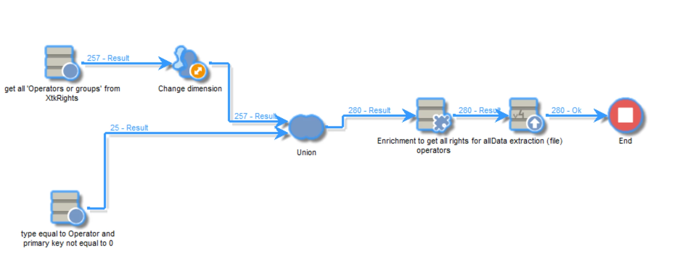 4.Repeat the above methodology to start from named rights and a direct change dimension to operator (all records).