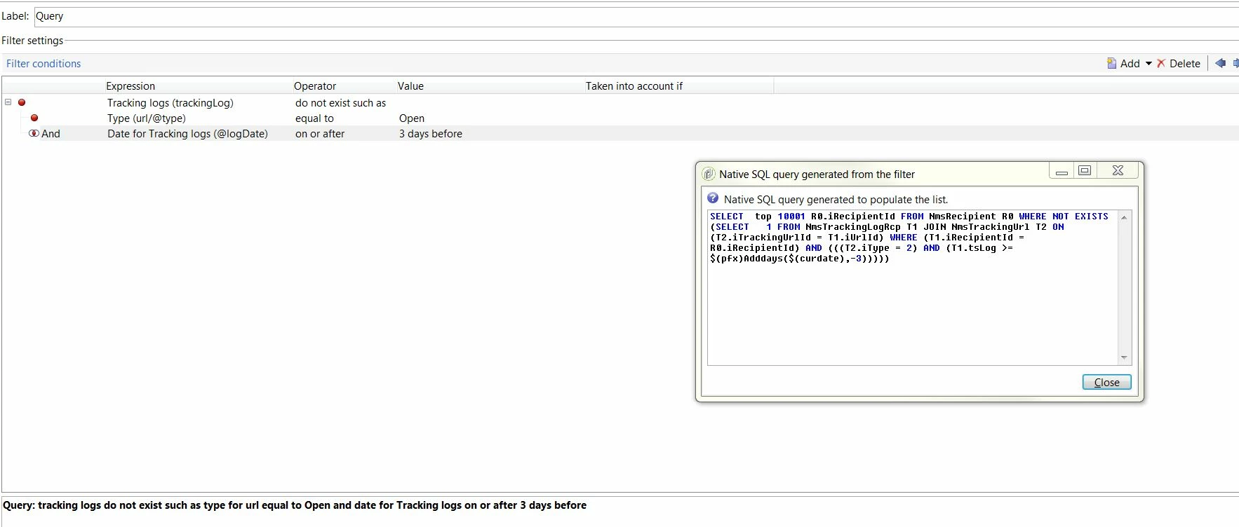 How to query the DIDN’T OPEN emails from last 3 days in adobe campaign management.