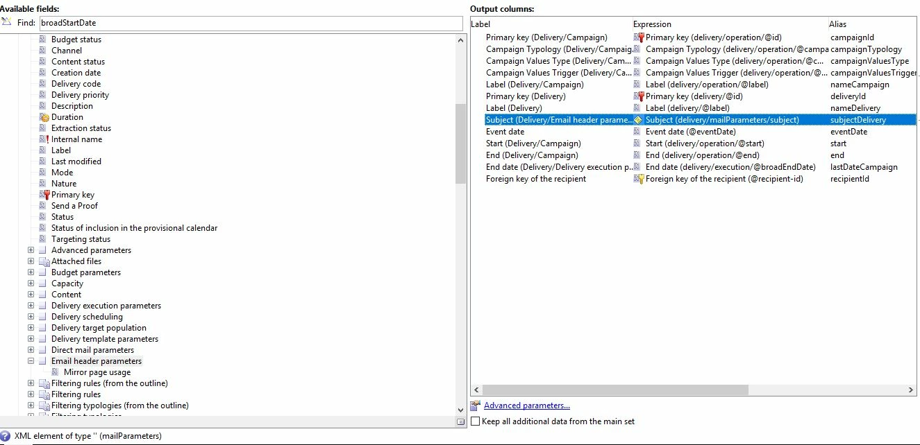 <element label="Email header parameters" name="mailParameters" xml="true">