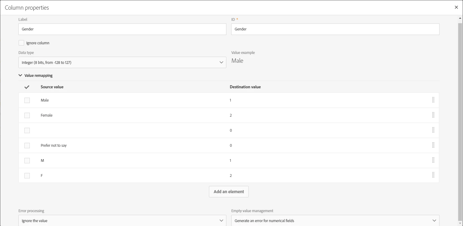 But its not accepting 0 or 1 values in Profile 'Gender' column, Even though its a byte datatype but its not updating in Profile.