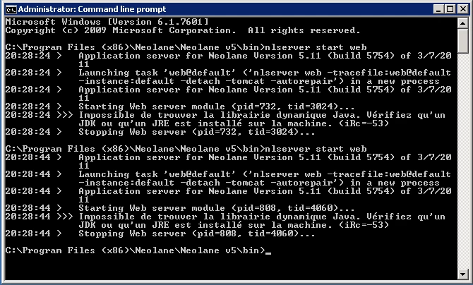 After installing Java SE JDK 6 x64 and testing that java/jre are installed using java -version, every time i run nlserver web -tomcat or nlserver start web I get: