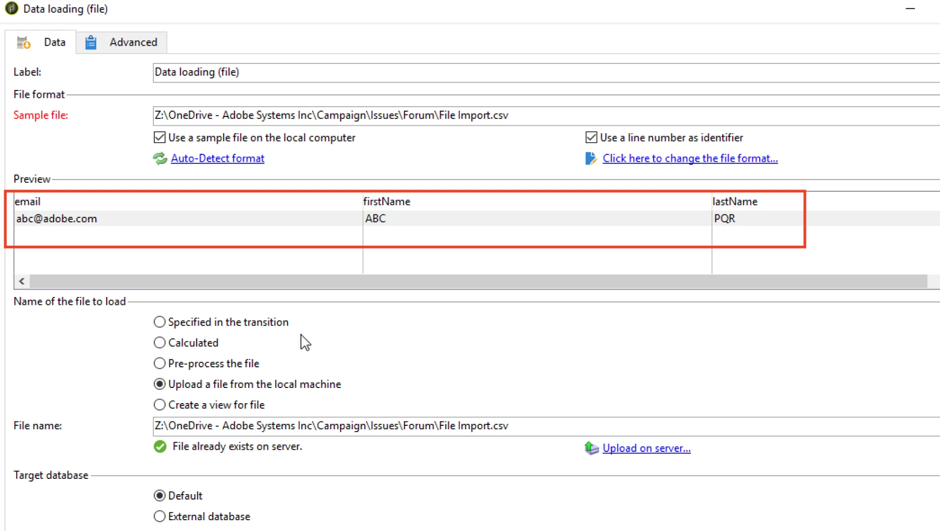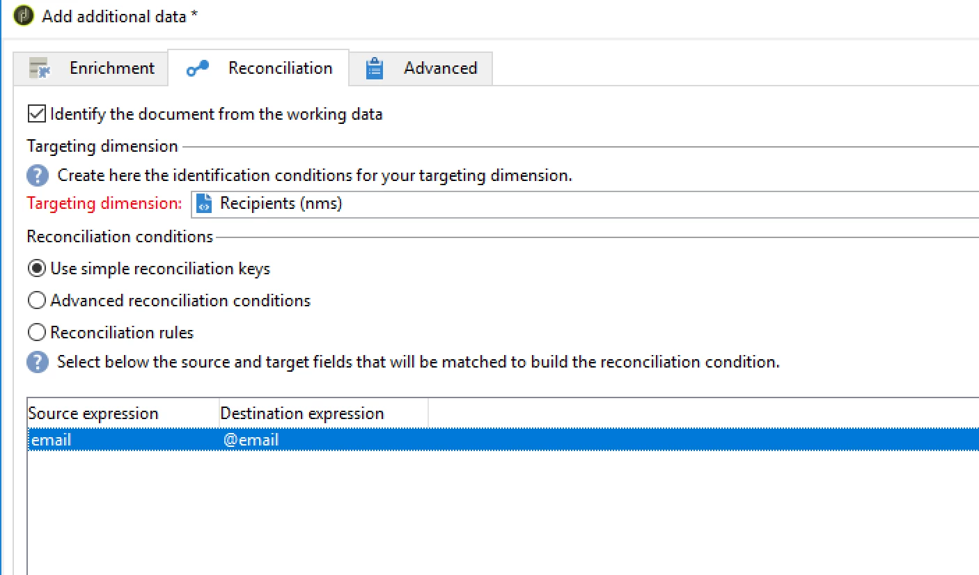 My issue rise whenever I try to configure the Intersection activity: it seems that any configuration works: I've tried to switch the Primary set (from query to data load) and I've set as reconciliation key a selection of column, setting first the recipient ID and then the ID field from the file.