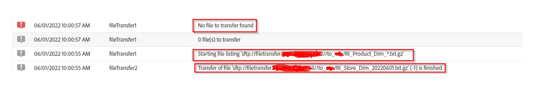 I got an error while trying to transfer a file through SFTP. The workflow was working fine, but it started throwing errors i.e. 0 file(s) transfer. But the files are available in the global space.