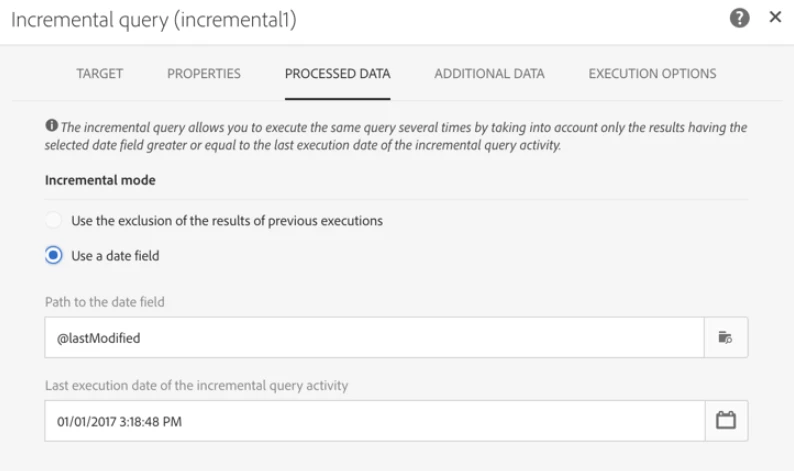 Last execution date of the incremental query